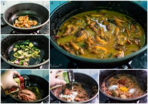 - Heat Oil in a wok and fry marinated prawns until they turn reddish. Strain from oil and keep aside.
