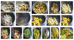 - Marinate prawns with ½ Tsp. Turmeric Powder, and Salt.